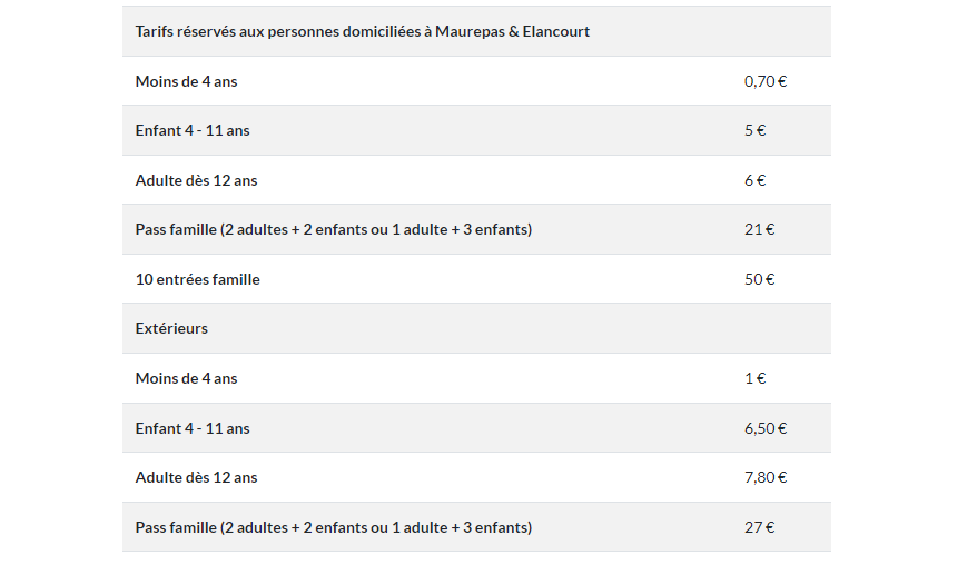 Tarifs réservés aux personnes domiciliées à Maurepas & Elancourt